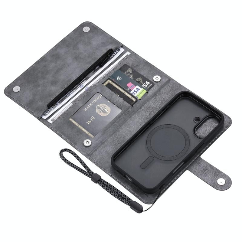 2. Λειτουργία πορτοφολιού: Η δερμάτινη θήκη είναι εξοπλισμένη με πορτοφόλι με φερμουάρ, υποδοχές καρτών και διαμερίσματα για μετρητά για κάρτες και ένα μικρό χρηματικό ποσό.