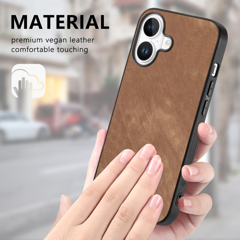 For iPhone 16 Vintage Leather PC Back Cover Phone Case(Brown)