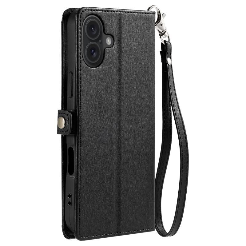 For iPhone 16 Wallet Multi-card Slot Leather Phone Case with Lanyard(Black)
