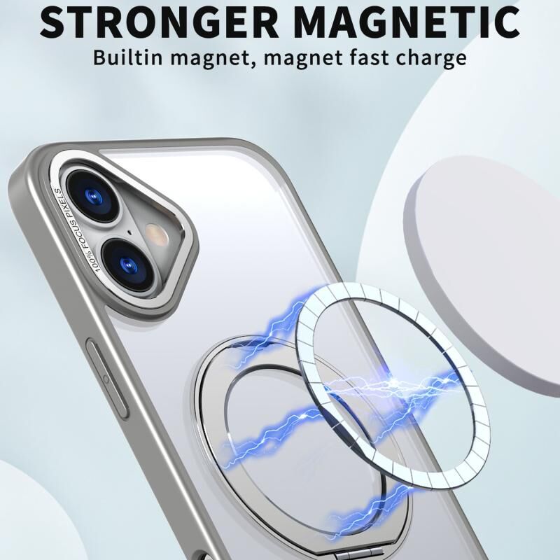 For iPhone 16 Wing Series MagSafe Magnetic Ring Holder Phone Case(Titanium Gray)