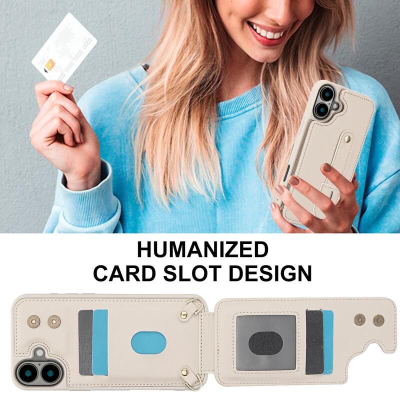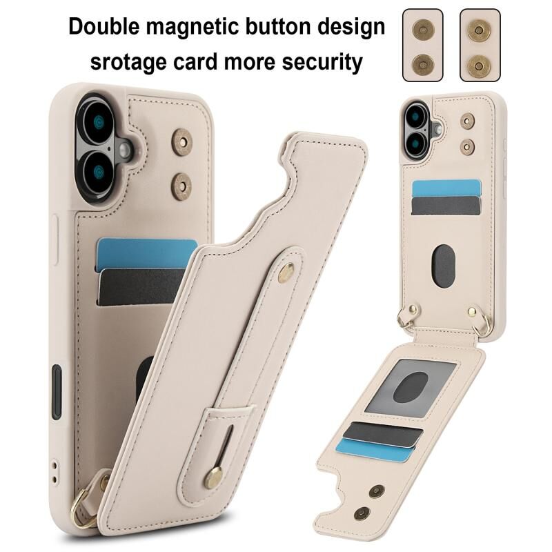 For iPhone 16 Wristband Vertical Flip Wallet Back Cover Phone Case with Long Lanyard(White)