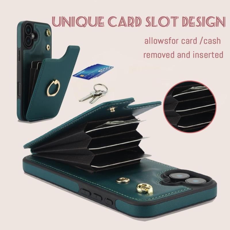 For iPhone 16 YM005 Skin Feel Card Bag Phone Case with Long Lanyard(Green)