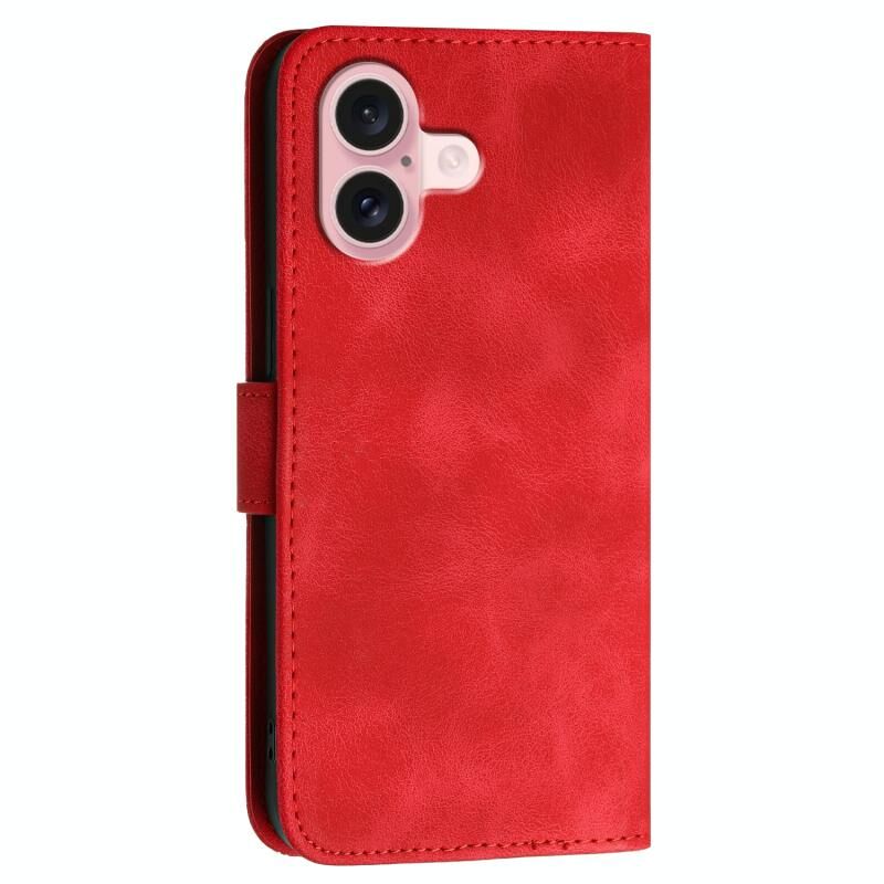 For iPhone 16 YX0080 Grid Butterfly Embossed Pattern Flip Leather Phone Case with Lanyard(Red)