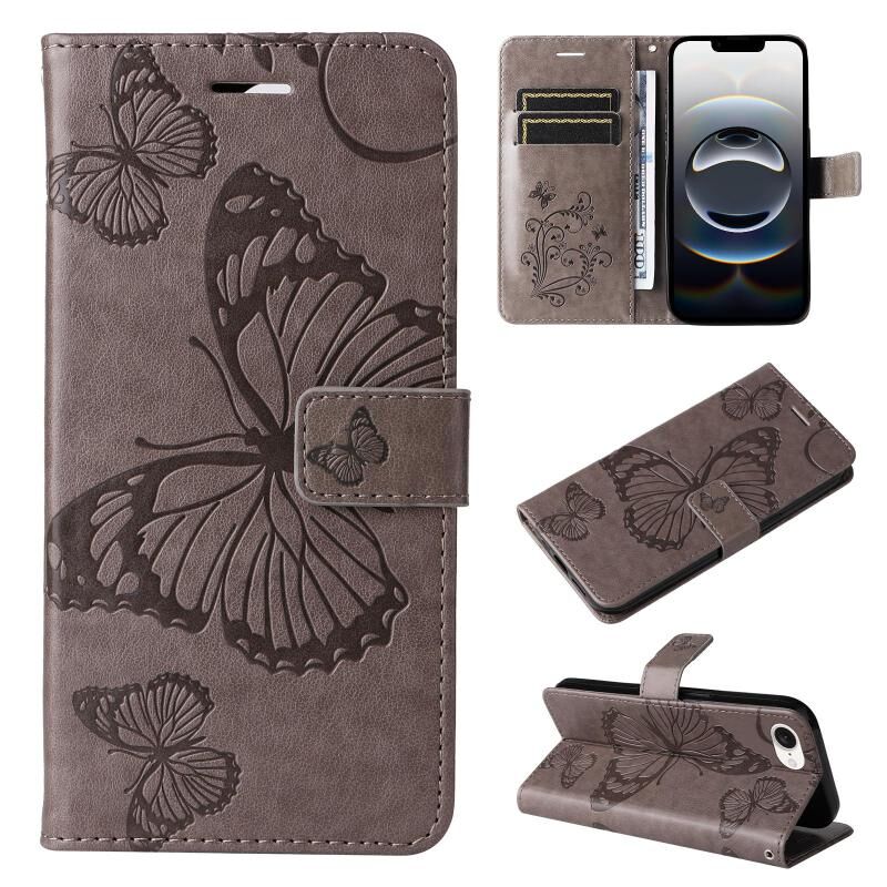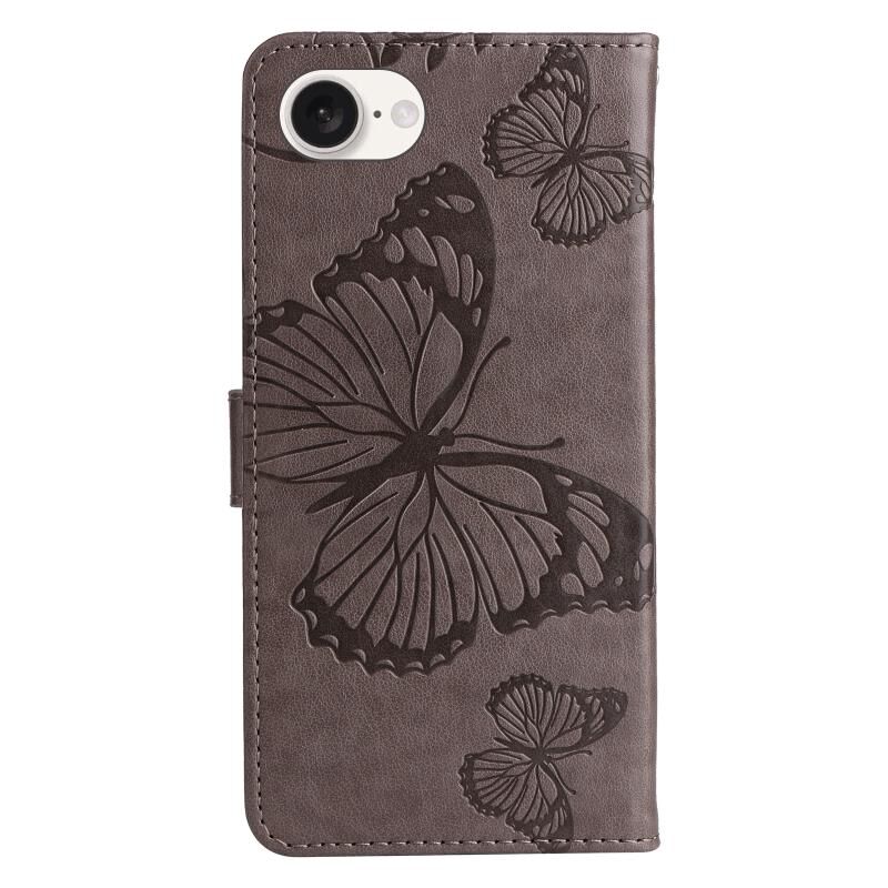 For iPhone 16e 3D Butterfly Embossed Pattern Flip Leather Phone Case(Grey)