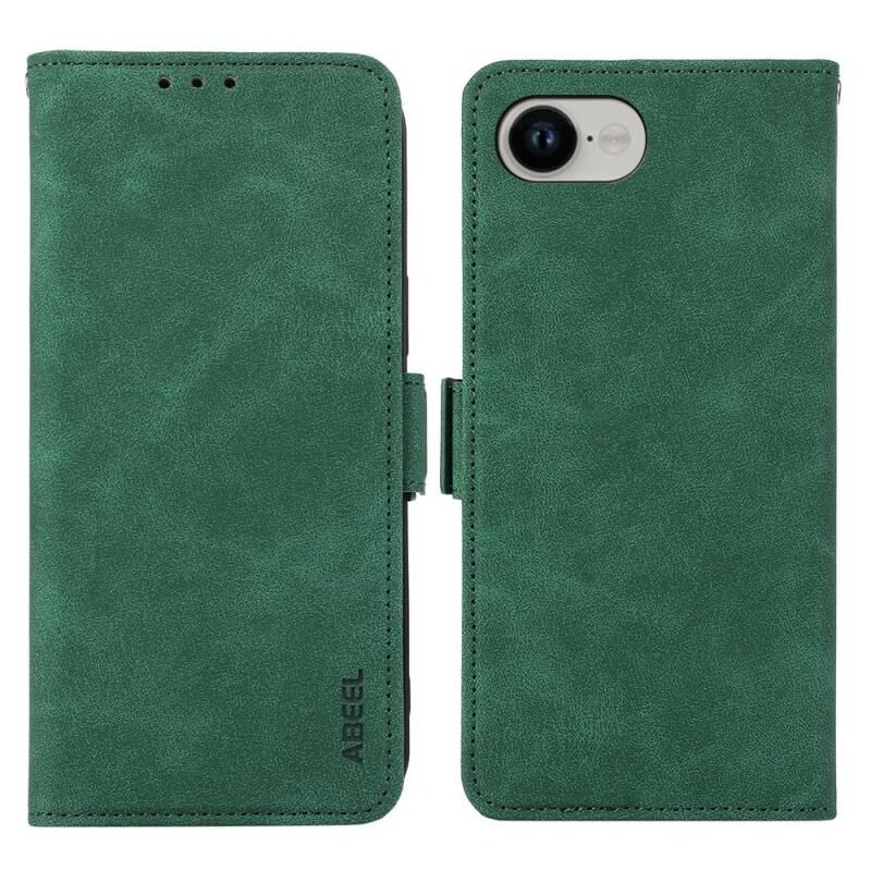For iPhone 16e ABEEL Frosted Magnetic RFID Leather Phone Case(Green)