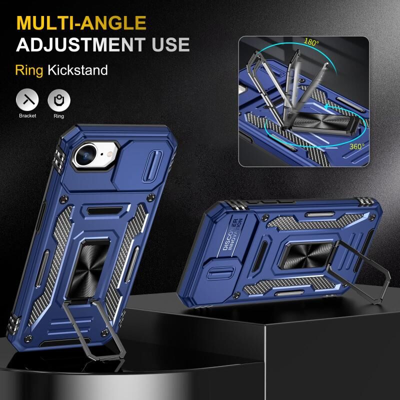 For iPhone 16e Armor PC + TPU Camera Shield Phone Case(Navy Blue)