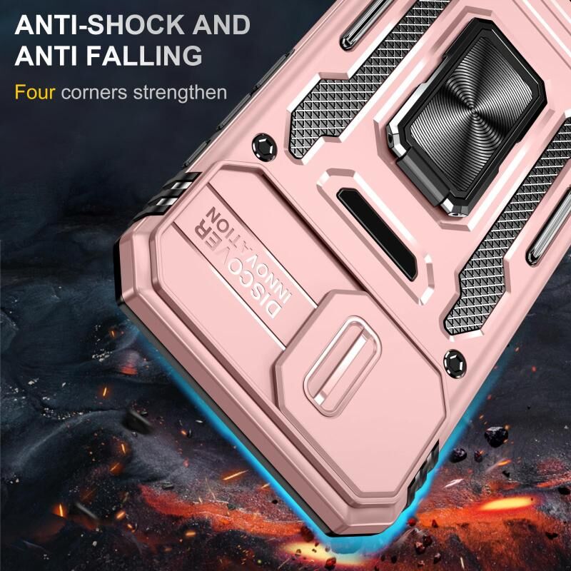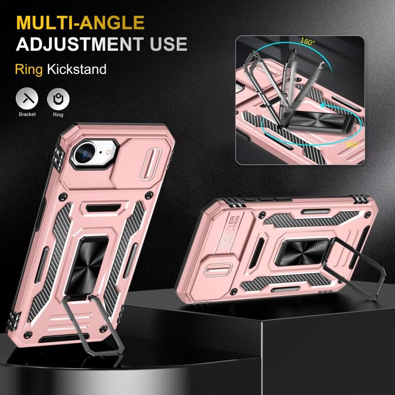 For iPhone 16e Armor PC + TPU Camera Shield Phone Case(Rose Gold)