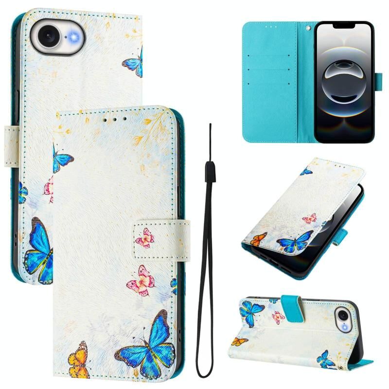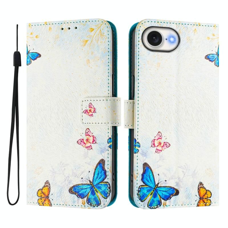For iPhone 16e Art Colored Drawing Pattern Leather Phone Case(Butterfly house)