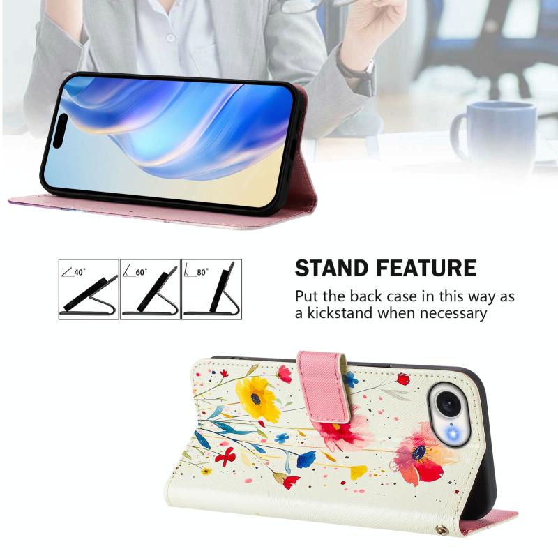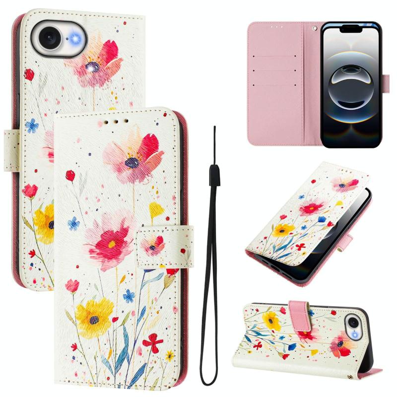 For iPhone 16e Art Colored Drawing Pattern Leather Phone Case(Flowers and plants)