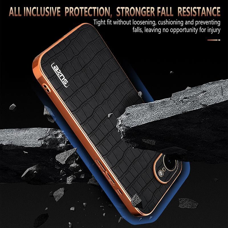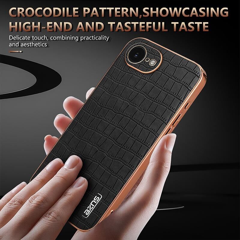 For iPhone 16e AZNS Electroplated Frame Crocodile Texture Full Coverage Phone Case(White) (AZNS)