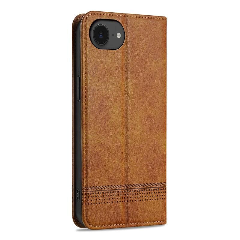 Θήκη τηλεφώνου από δέρμα με μαγνητική υφή μοσχαριού για iPhone 16e AZNS (Ανοιχτό Καφέ) (AZNS)