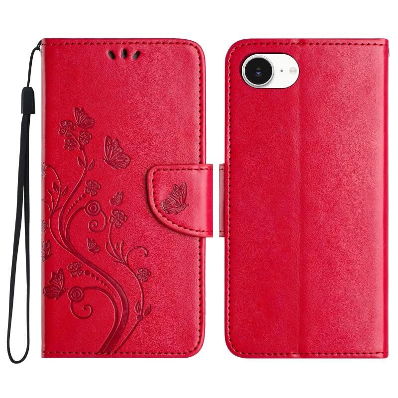 For iPhone 16e Butterfly Flower Pattern Flip Leather Phone Case(Red)