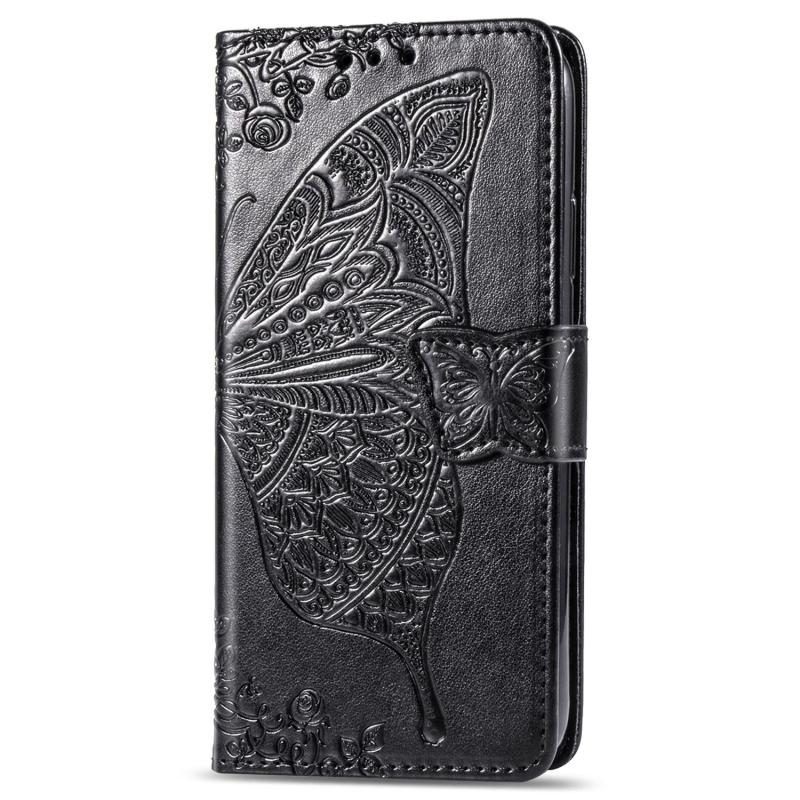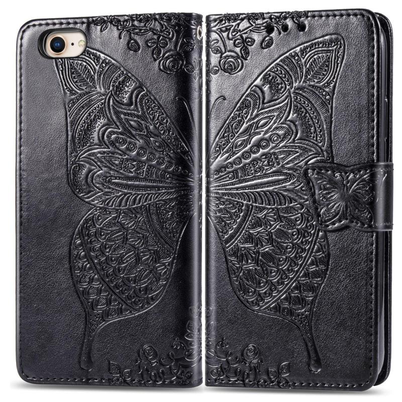 For iPhone 16e Butterfly Love Flower Embossed Leather Phone Case(Black)