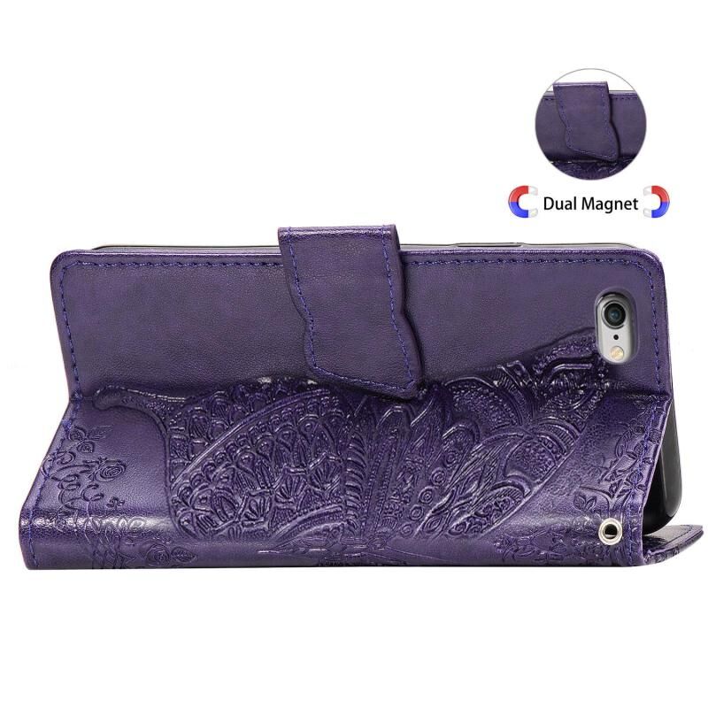 Θήκη τηλεφώνου από δέρμα με ανάγλυφο σχέδιο πεταλούδας και λουλουδιών για iPhone 16e (Μαύρο)