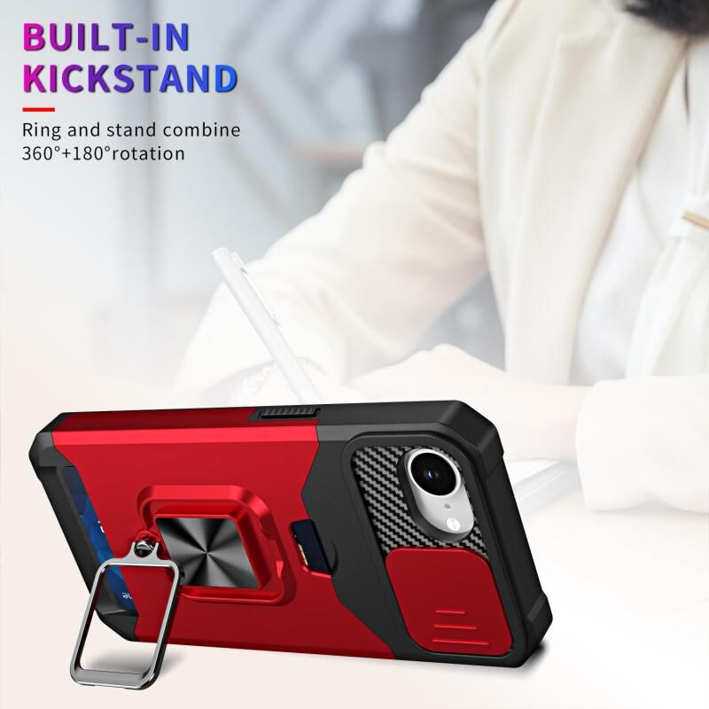 For iPhone 16e Camera Shield Card Slot PC+TPU Phone Case(Red)