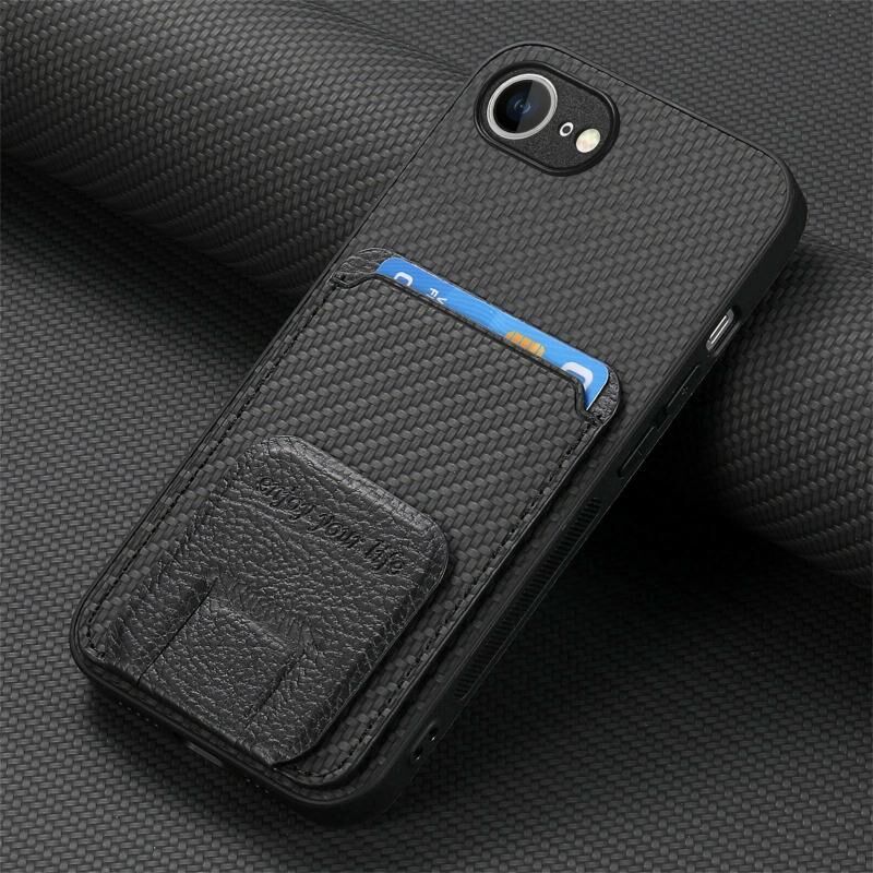Θήκη τηλεφώνου για iPhone 16e από ανθρακονήματα με θήκη κάρτας και πτυσσόμενη βάση (Μπλε)