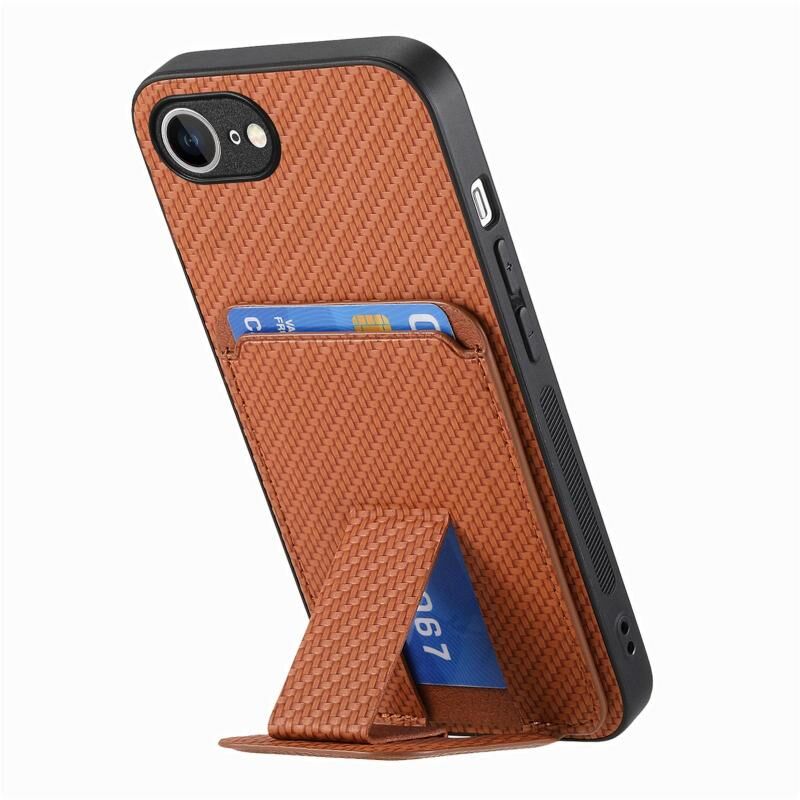 Θήκη τηλεφώνου για iPhone 16e από ανθρακονήματα με θήκη κάρτας και πτυσσόμενη βάση (Μπλε)