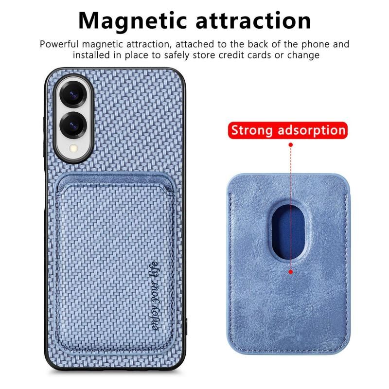 For iPhone 16e Carbon Fiber Leather Card Magsafe Phone Case(Blue)