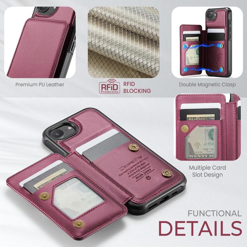 For iPhone 16e CaseMe C22 Card Slots Holder RFID Anti-theft Phone Case(Red) (CaseMe)