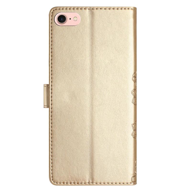 For iPhone 16e Cherry Blossom Butterfly Skin Feel Embossed PU Phone Case(Gold)