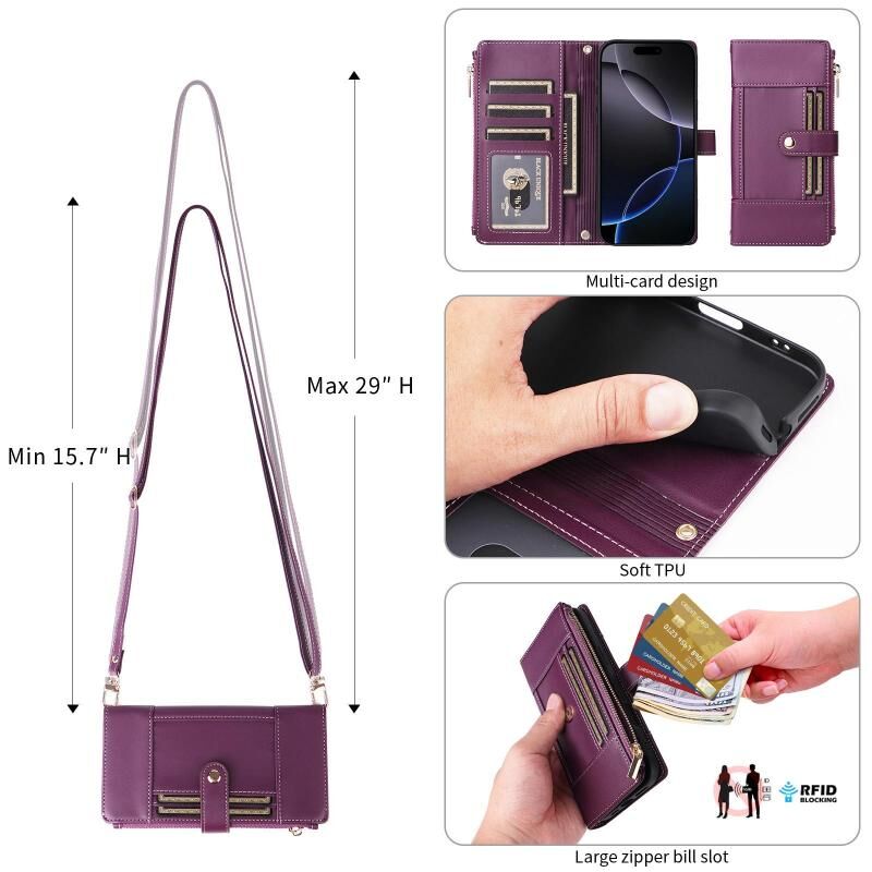 2. Multi-card Wallet Function: Card slots and zipper cash compartment to store your credit cards, cash, or small notes for daily needed.(Note: Two card slots are for small size phones, three card slots are for large size phones, subject to the actual product)