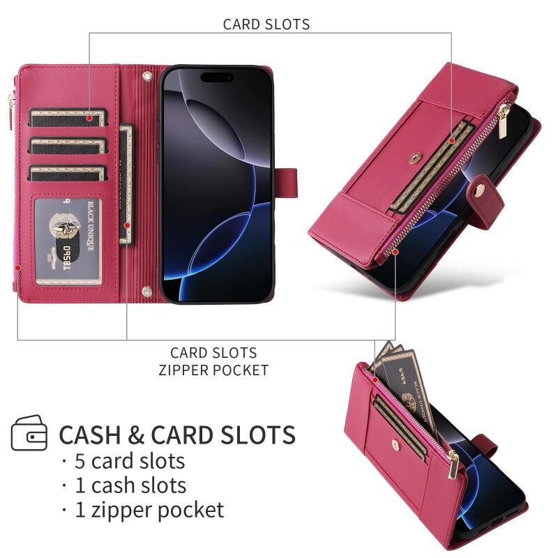 2. Multi-card Wallet Function: Card slots and zipper cash compartment to store your credit cards, cash, or small notes for daily needed.(Note: Two card slots are for small size phones, three card slots are for large size phones, subject to the actual product)