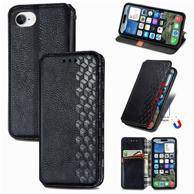 Θήκη τηλεφώνου από δέρμα με μαγνητική έλξη και ανάγλυφο σχέδιο για iPhone 16e (Μπλε)