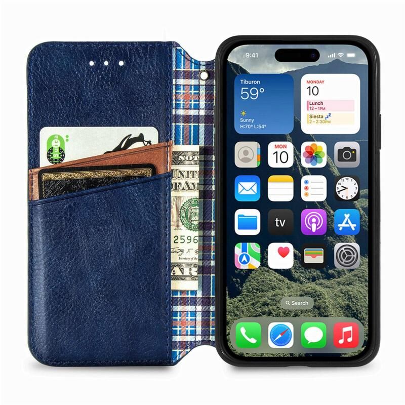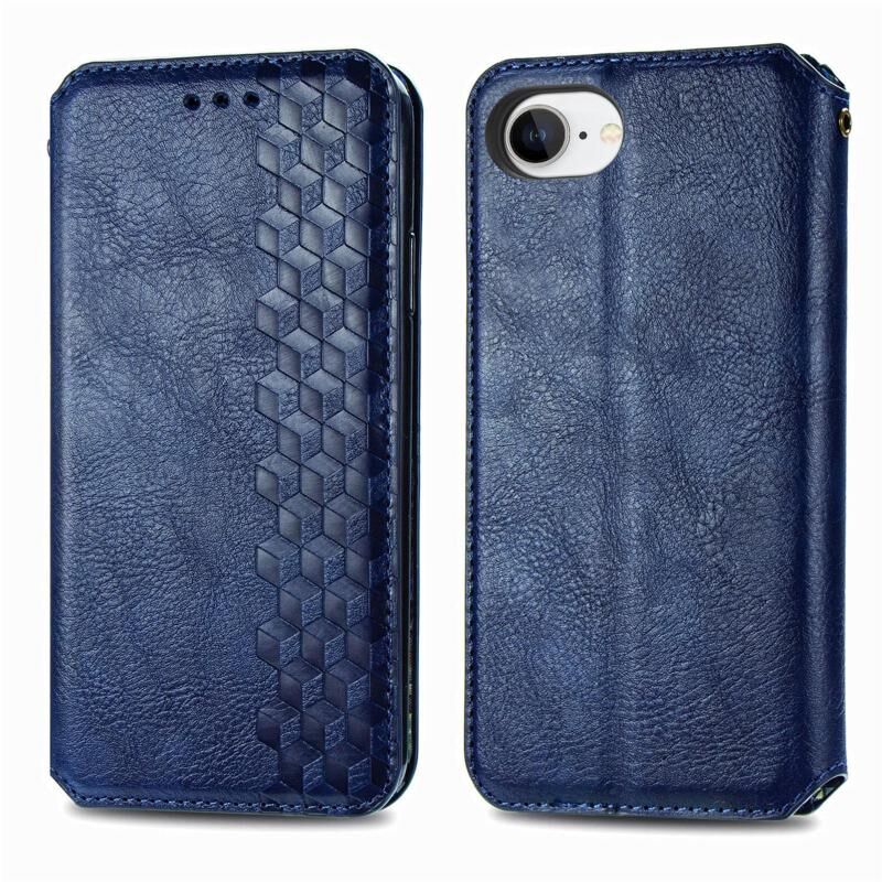 Θήκη τηλεφώνου από δέρμα με μαγνητική έλξη και ανάγλυφο σχέδιο για iPhone 16e (Μπλε)