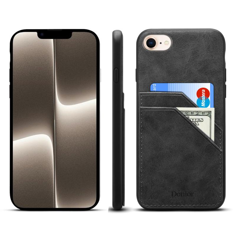 For iPhone 16e Denior D09 PU Dual Card Slot Back Cover Phone Case(Black) (Denior)