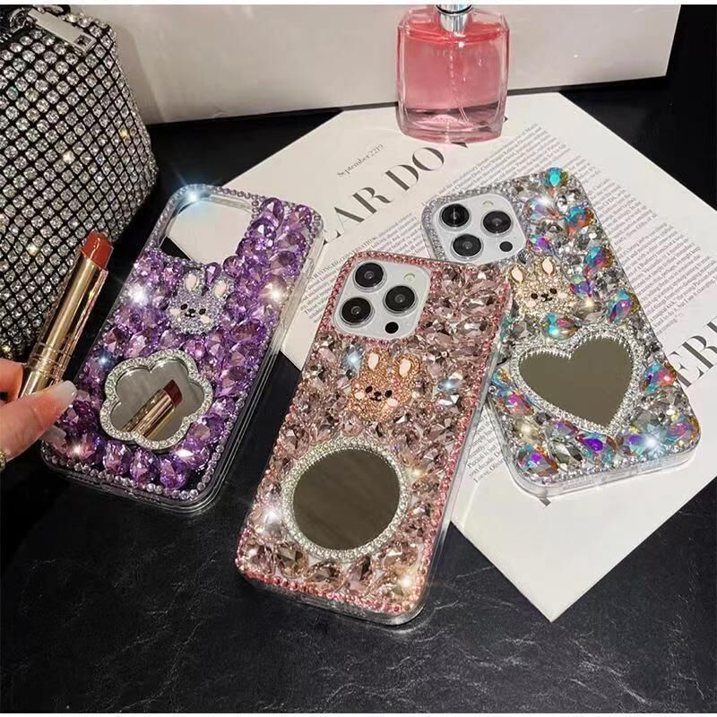 Θήκη τηλεφώνου χειροποίητη από πολυανθρακικό (PC) για iPhone 16e, Καθρέφτης Διαμαντένιας Λαγουδάκι (Καθρέφτης Μωβ Λουλουδιού)