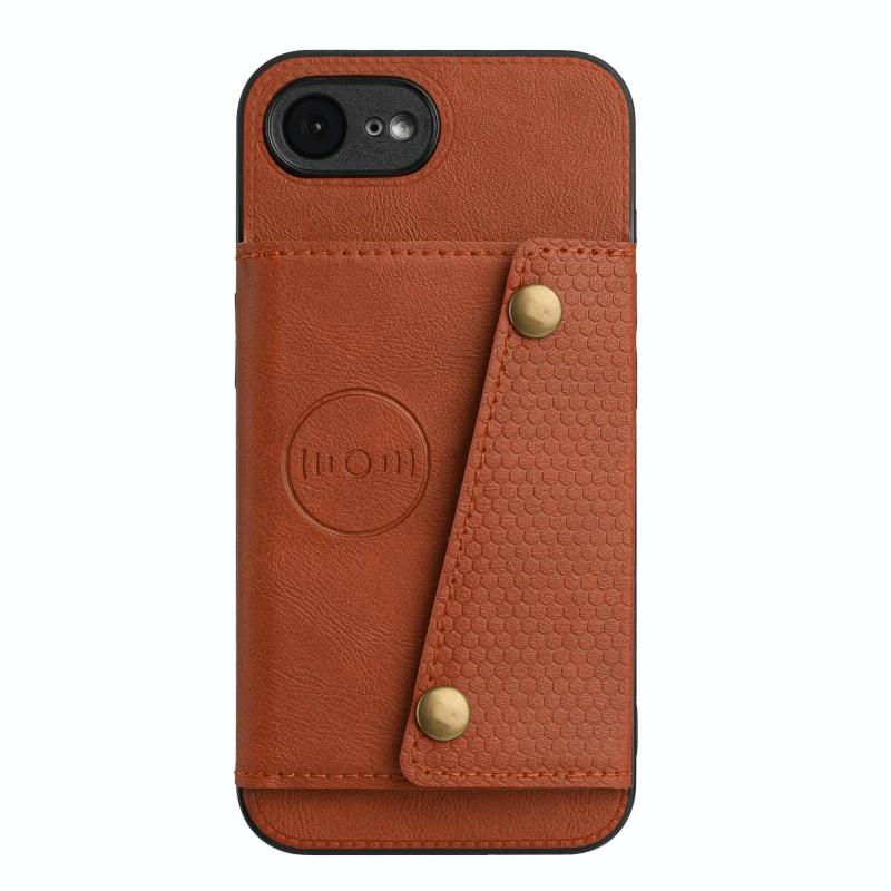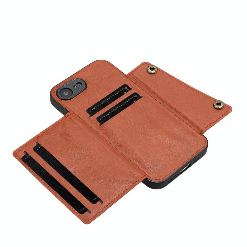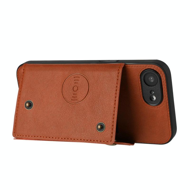 For iPhone 16e Double Buckle Card Slots PU + TPU Phone Case(Brown)