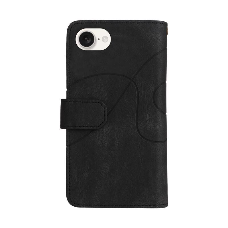 For iPhone 16e Dual-color 9 Card Slots Zipper Wallet Leather Phone Case(Black)