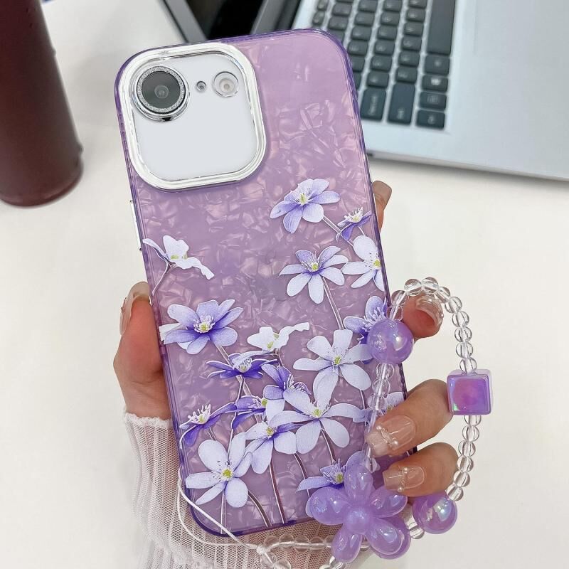 For iPhone 16e Electroplating Flowers Plants Texture Wristband TPU Phone Case(Lilac Flowers FL16)