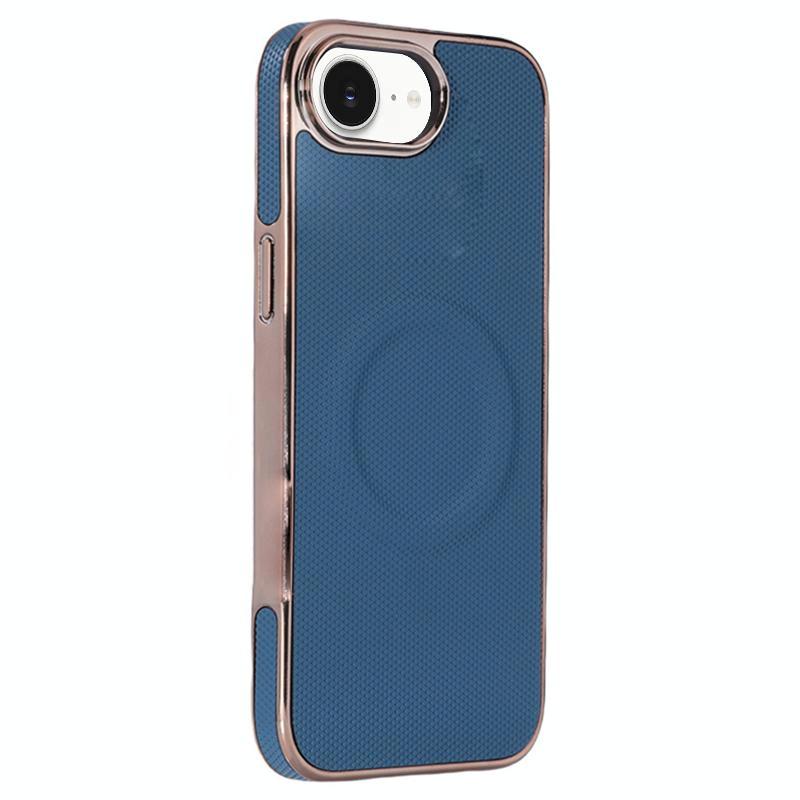 For iPhone 16e Electroplating Soft Side Sticker Leather MagSafe Phone Case(Dark Blue)