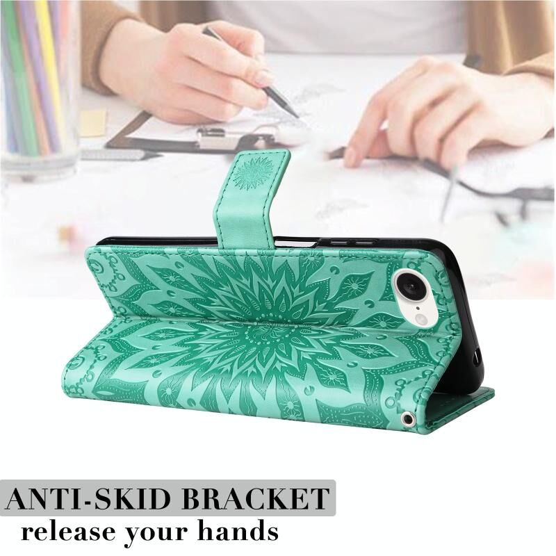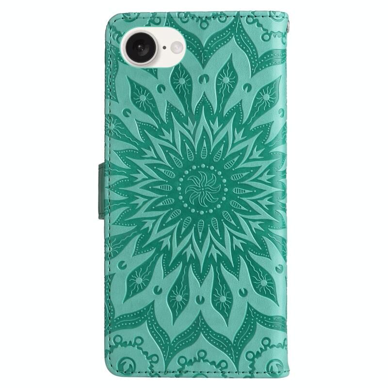Θήκη τηλεφώνου από δέρμα με σχέδιο ανάγλυφου ηλίανθου για iPhone 16e (Καφέ)