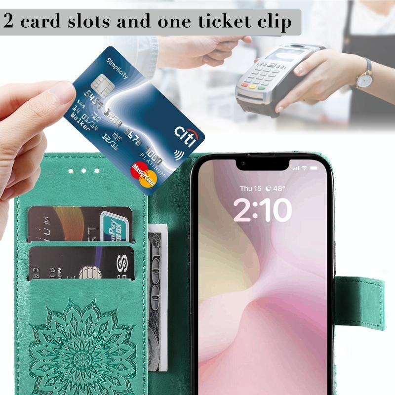 4. Λειτουργία Πορτοφολιού: Η δερμάτινη θήκη είναι εξοπλισμένη με υποδοχές καρτών για την τοποθέτηση καρτών και μικρού ποσού μετρητών.