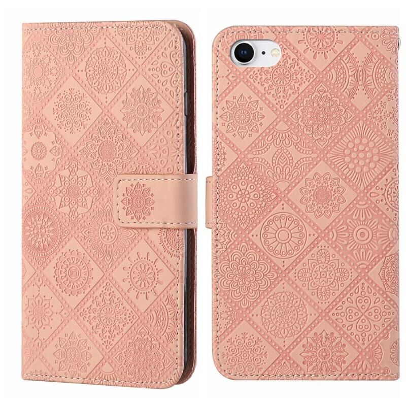 Θήκη τηλεφώνου δερμάτινη με ανάγλυφο σχέδιο εθνοτικού στυλ για iPhone 16e (Καφέ)
