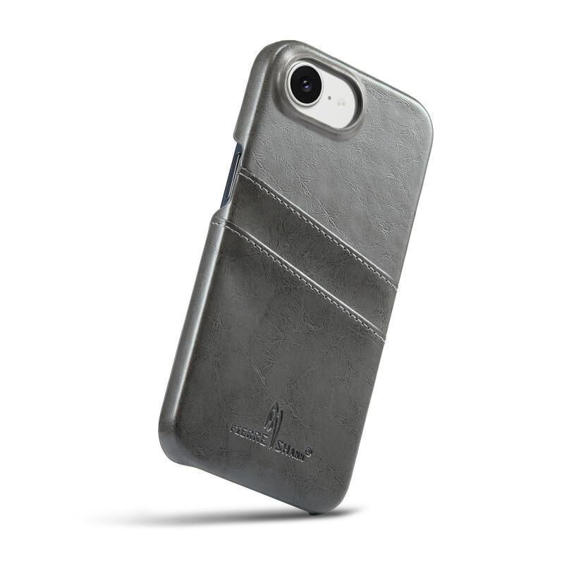 For iPhone 16e Fierre Shann Retro Oil Wax Texture Card Slots PU Leather Phone Case(Grey) (FIERRE SHANN)