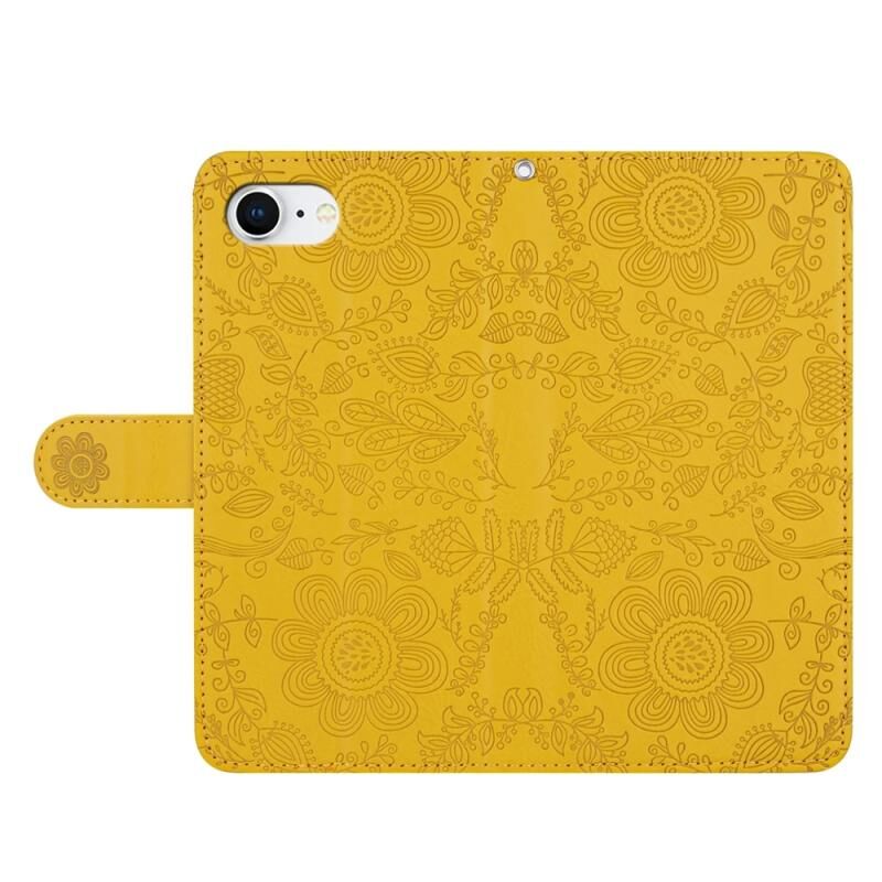For iPhone 16e Floral Embossed Pattern Leather Phone Case(Yellow)
