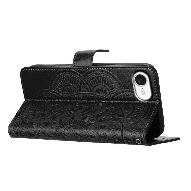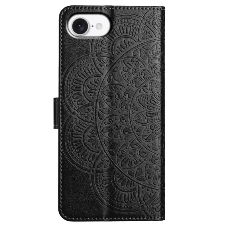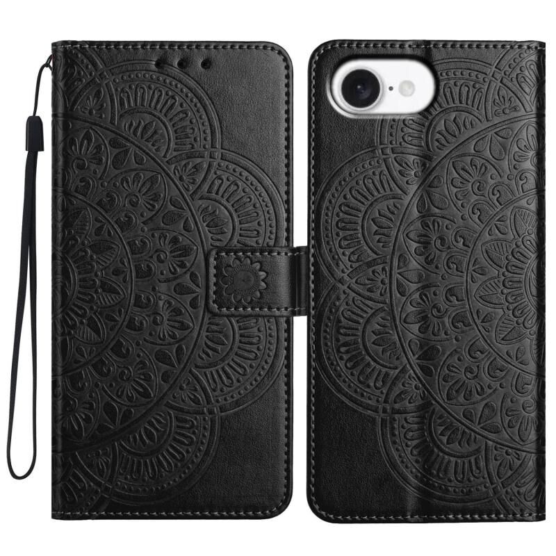 For iPhone 16e Flower Embossed Leather Phone Case(Black)