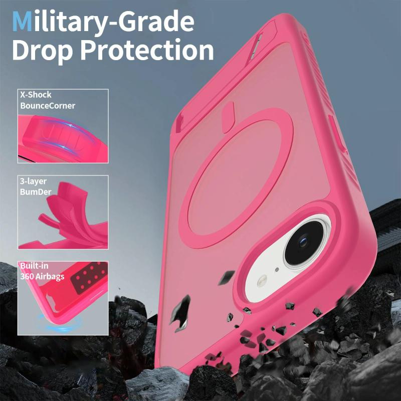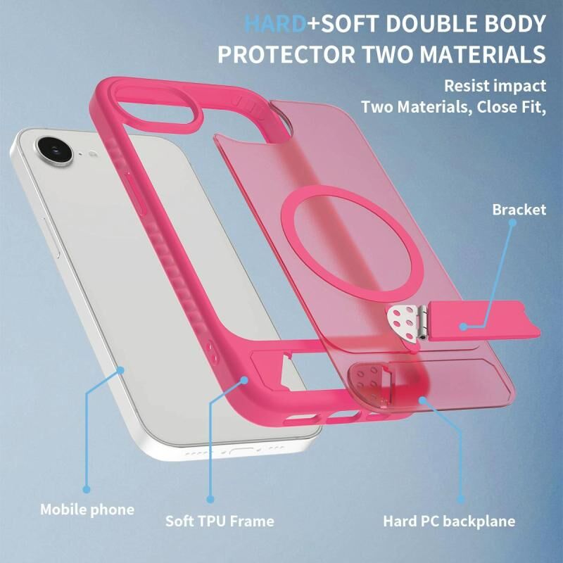 For iPhone 16e Frosted Holder PC Hybrid TPU MagSafe Phone Case(Rose Red)