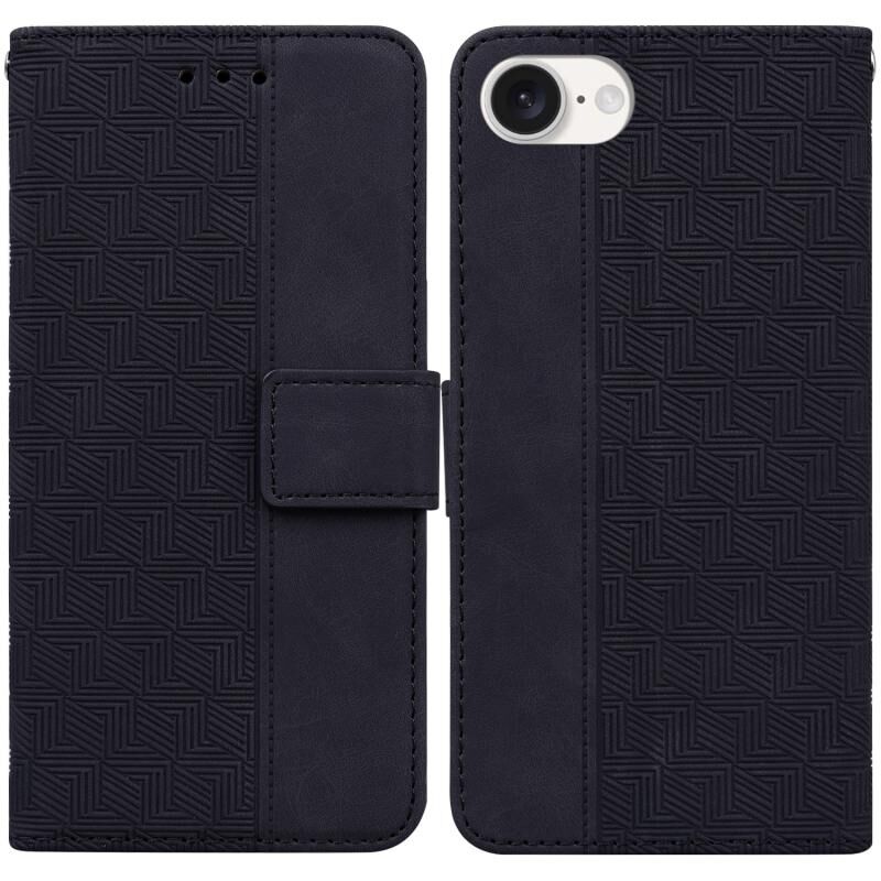 Θήκη τηλεφώνου δερμάτινη με γεωμετρική ανάγλυφη διακόσμηση για iPhone 16e (Καφέ)