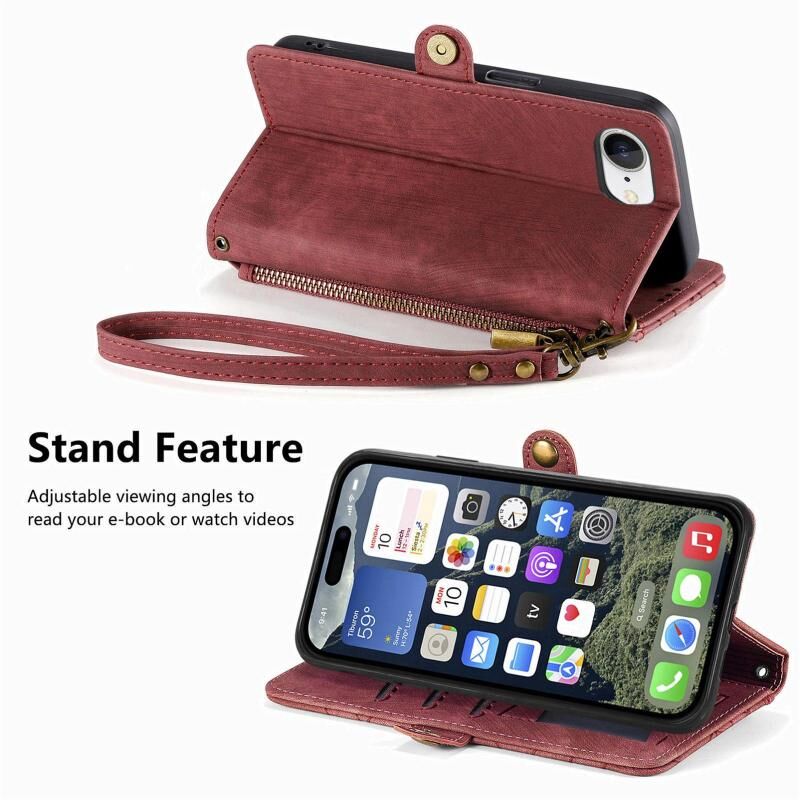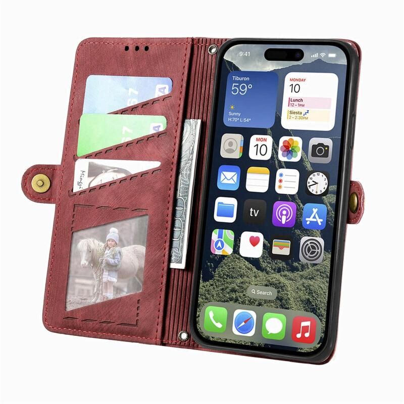 For iPhone 16e Geometric Zipper Wallet Side Buckle Leather Phone Case(Red)