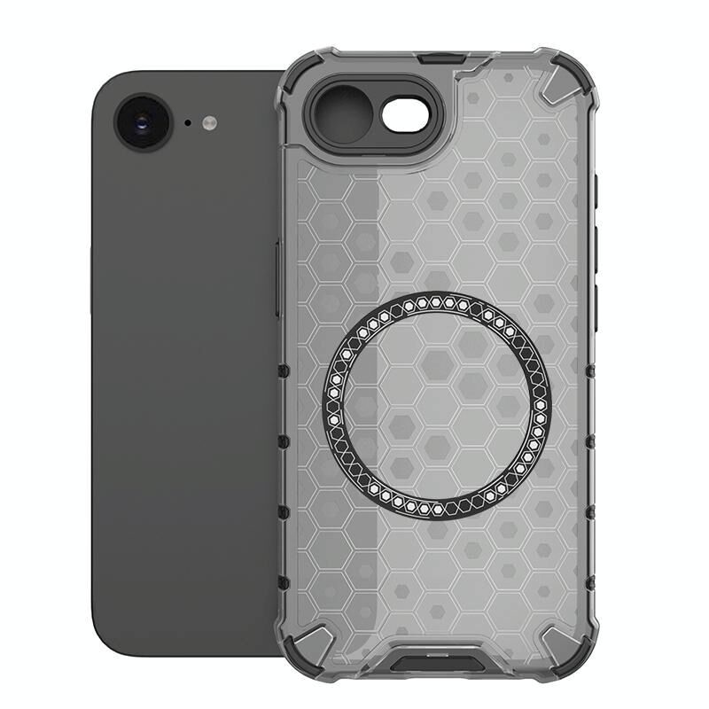 For iPhone 16e Honeycomb Magnetic Ring Shockproof Phone Case(Black)