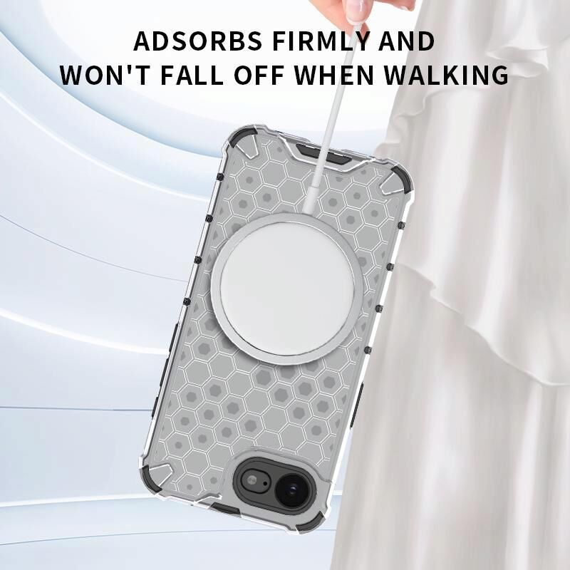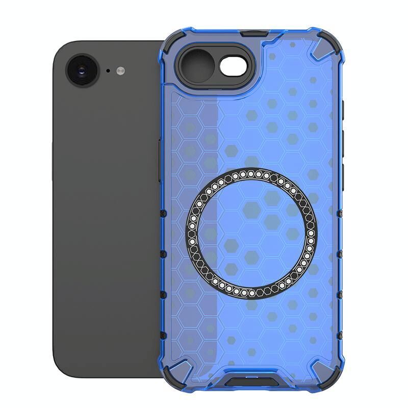 For iPhone 16e Honeycomb Magnetic Ring Shockproof Phone Case(Blue)