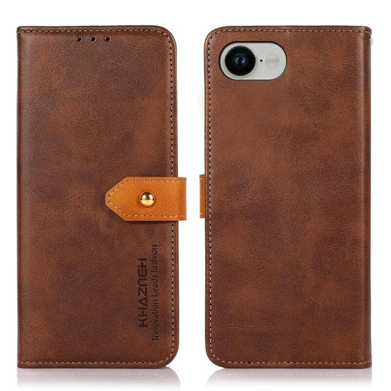 For iPhone 16e KHAZNEH Dual-color Cowhide Texture Flip Leather Phone Case(Brown)