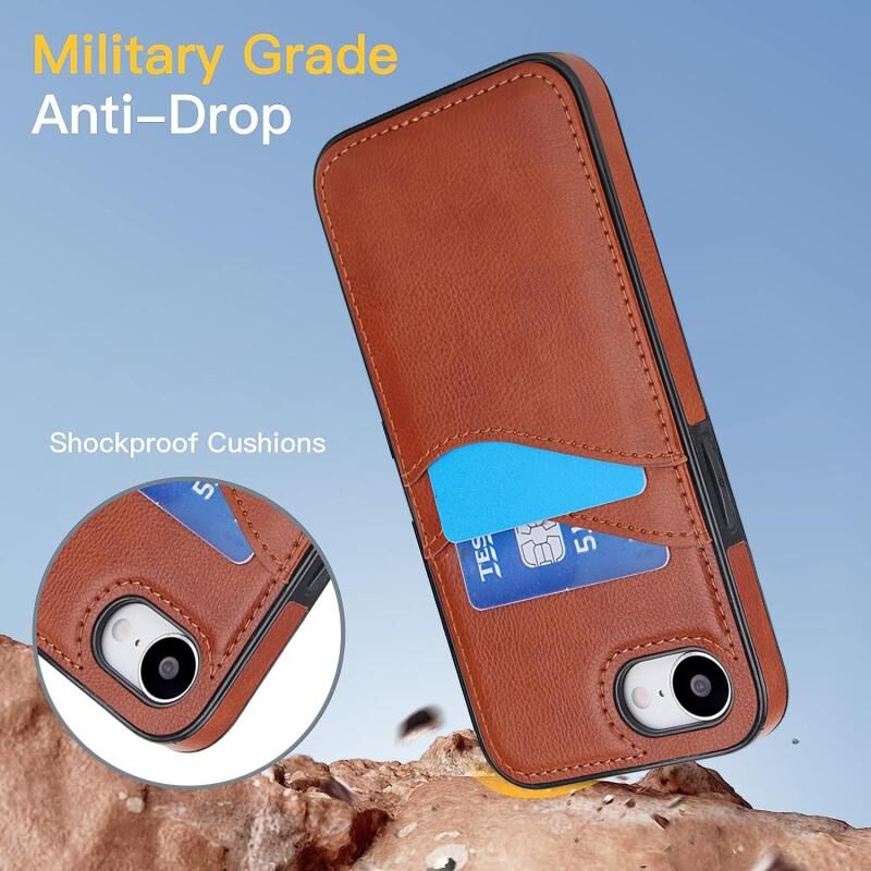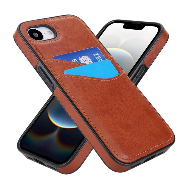 Θήκη τηλεφώνου για iPhone 16e από δέρμα Litchi με θήκες για κάρτες (Μαύρο)