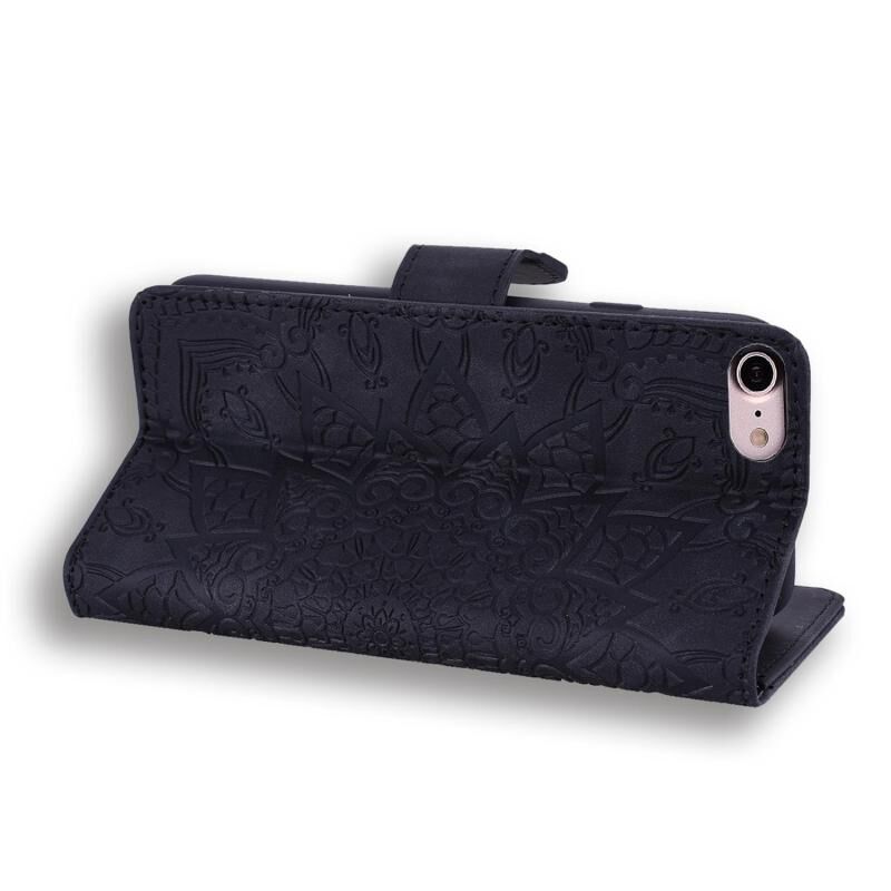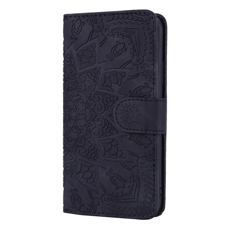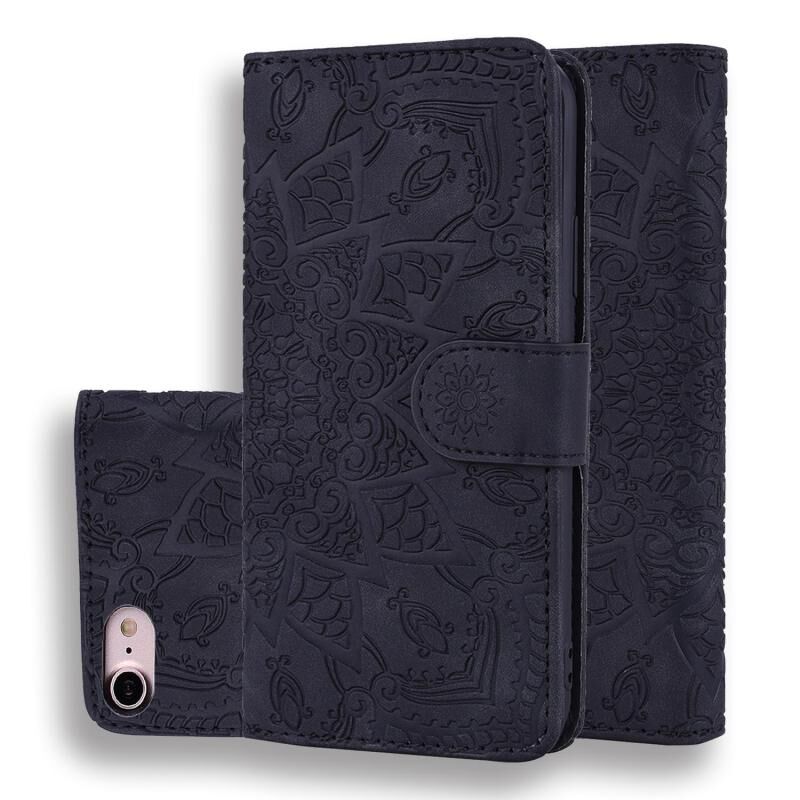 Θήκη τηλεφώνου για iPhone 16e Mandala Embossed Διπλού Διπλώματος από Δέρμα Μοσχαριού (Καφέ)