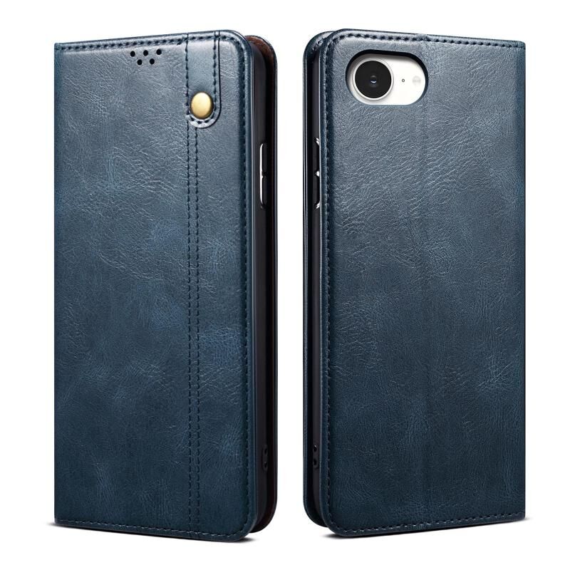 For iPhone 16e Oil Wax Crazy Horse Texture Leather Phone Case(Blue)