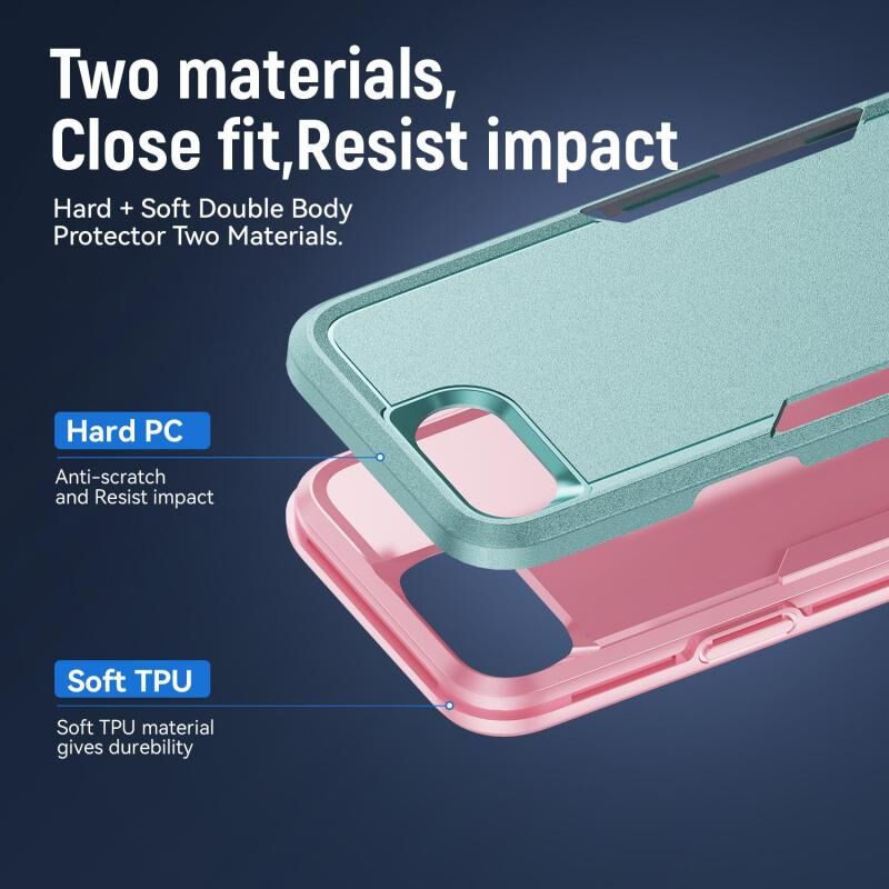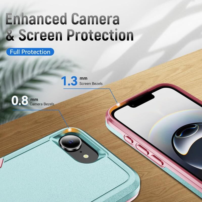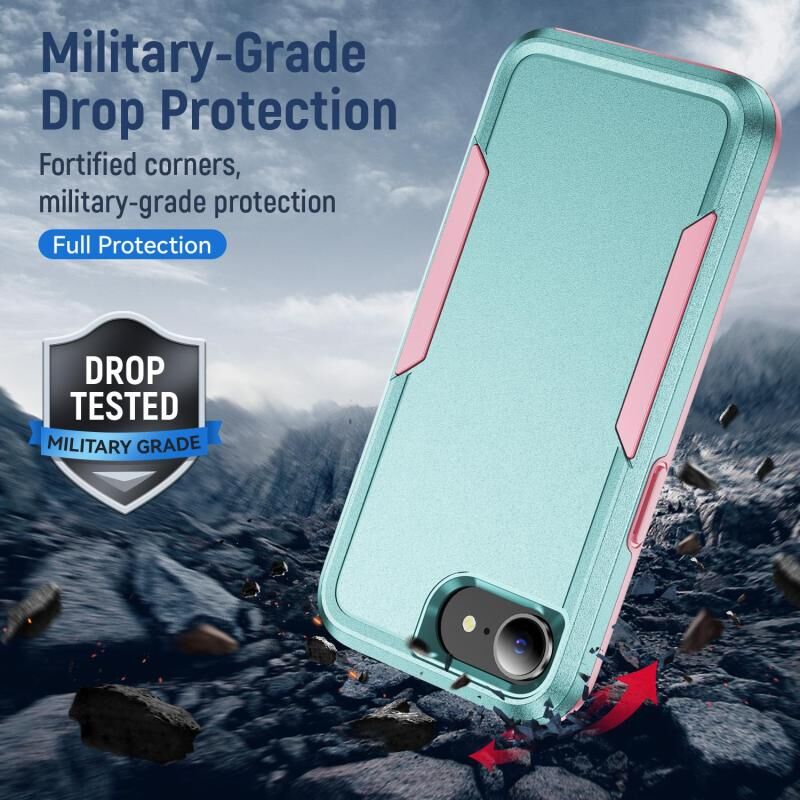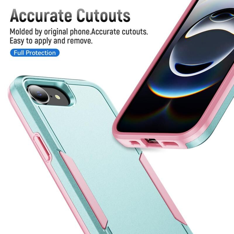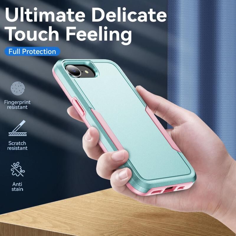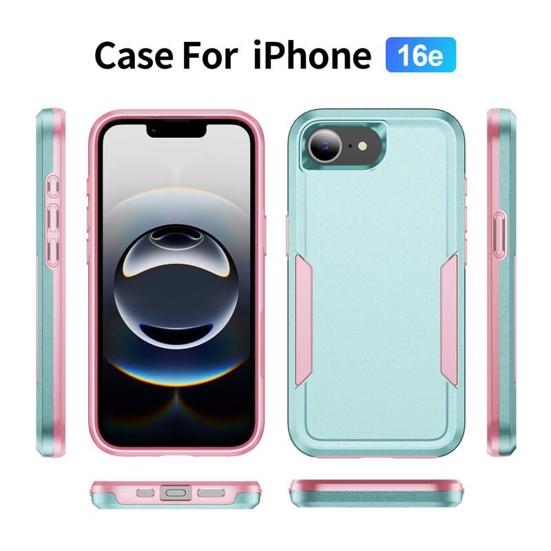 For iPhone 16e Pioneer Armor Heavy Duty PC + TPU Phone Case(Green+Pink)